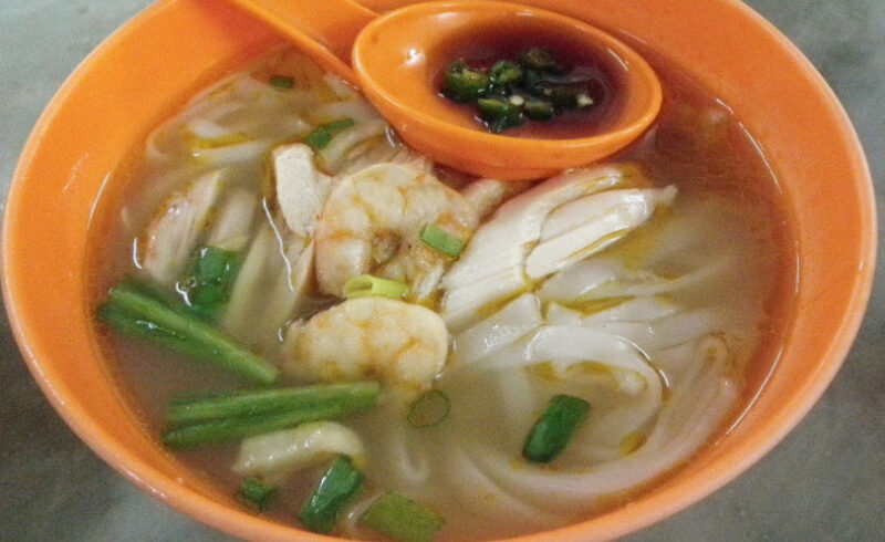 Delicate flat rice noodles stir-fried with shredded chicken, prawns, and vegetables in a light and flavorful sauce.