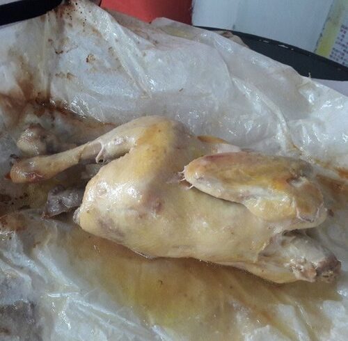Boiled chicken marinated in a special salt brine, resulting in a flavorful and tender dish.